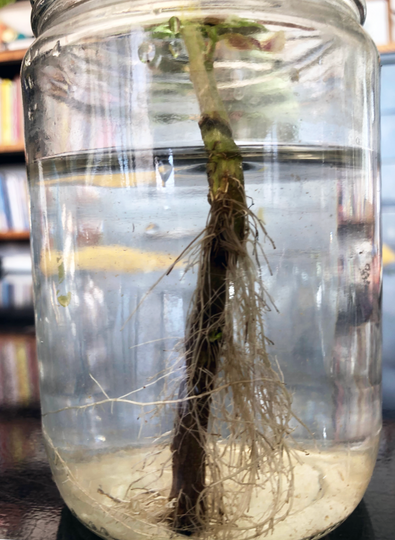 Promessas de Profundidades apresenta-se como uma instalação composta por uma constelação de registros fotográficos, desenhos e cianotipias de processos de enraizamentos de plantas realizados pela artista durante o tempo suspenso da pandemia.